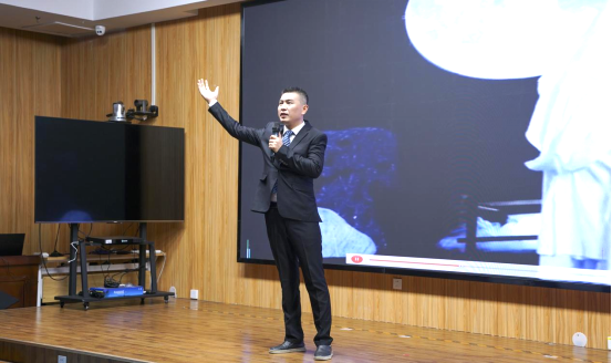 本次活动形式创新,特邀嘉宾新乡市语言艺术研究会会长许少波进行中秋诗文导赏。许会长为观众分享中秋传统文化,并解读相关中秋诗文。他从中秋节的起源、习俗讲到诗词中的明月意象,生动阐释了“团圆”与“思念”的文化内核。他强调,中秋不仅是赏月的节日,更是中华文化中“家国一体”情怀的集中体现,引发了在场师生的强烈共鸣。