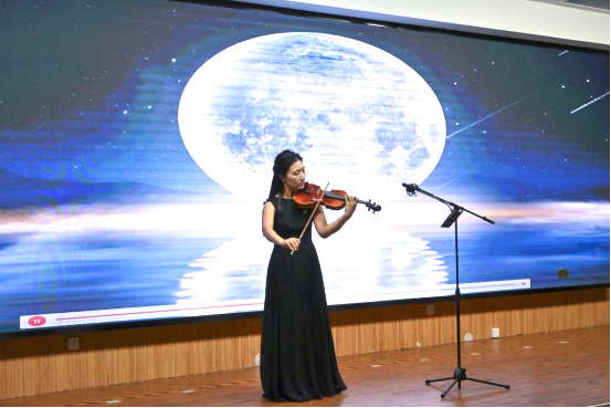 除了诗文诵读,活动还融入了丰富的艺术表演。小提琴独奏《月亮代表我的心》旋律悠扬,为诵读会增添了浪漫气息;新乡学院女工合唱团带来的《萱草花》温柔婉转,展现了师者的柔情似水;女声独唱《望月》则以空灵的嗓音将观众带入澄澈的月夜。